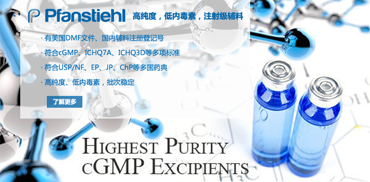 “熱烈祝賀Pfanstiehl的注射級甘氨酸Glycine(G-140)喜獲CDE登記號F20250000403, 這是Pfanstiehl產品獲得的第18個CDE登記號!”甘氨酸在醫藥輔料制劑中應用廣泛,, 可作為緩沖劑,增溶劑,穩定劑等,具有諸多優勢。Pfanstiehl秉承一貫高品質理念,為滿足全球生物制藥行業對于高品質甘氨酸的需求,隆重推出的注射級甘氨酸Glycine (G-140), 具有超高純度,超低內毒素,超低金屬殘留的特點,單獨檢測29種金屬離子,并且新增DNA,RNA,DNA酶,RNA酶和脂肪酶,亞硝酸鹽等多項質量指標的檢測,符合多國藥典規定(USP, EP, BP, JPE, ChP),可用于生物治療性藥物和疫苗的生產。產品信息:· 產品名稱:Glycine, High Purity, Low Endotoxin, Low Metals, USP, EP, BP, JPE, ChP (G-140)· 中文名稱:甘氨酸· 分子式:C2H5NO2· 分子量:75.07 g / mol· CAS號:56-40-6· 產品貨號:G-140產品特點: · 超高純度,超低內毒素,超低微生物含量,超低金屬雜質殘留· 質量指標新增DNA,RNA,DNA酶,RNA酶,脂肪酶和亞硝酸鹽檢測· 符合多國藥典:USP, EP, BP, JPE, ChP· 符合ICH Q3D標準· 符合GMP標準· 已獲DMF和CDE登記號 產品應用:· 緩沖劑· 穩定劑· 增溶劑如果您對Pfanstiehl注射級別Glycine G-140感興趣,歡迎聯系Pfanstiehl 中國區代理商北京西美杰科技有限公司獲得如下詳細的產品概況說明文件和測試樣品。Pfanstiehl Inc.最新產品系列如下,歡迎聯系北京西美杰科技有限公司獲取100g裝免費樣品。北京西美杰科技有限公司為Pfanstiehl中國代理,為客戶提供完善的技術支持與售后服務。歡迎撥打西美杰客服電話400-050-4006或者登陸網站www_xmjsci_com.0575400.com了解更多信息。 更多>